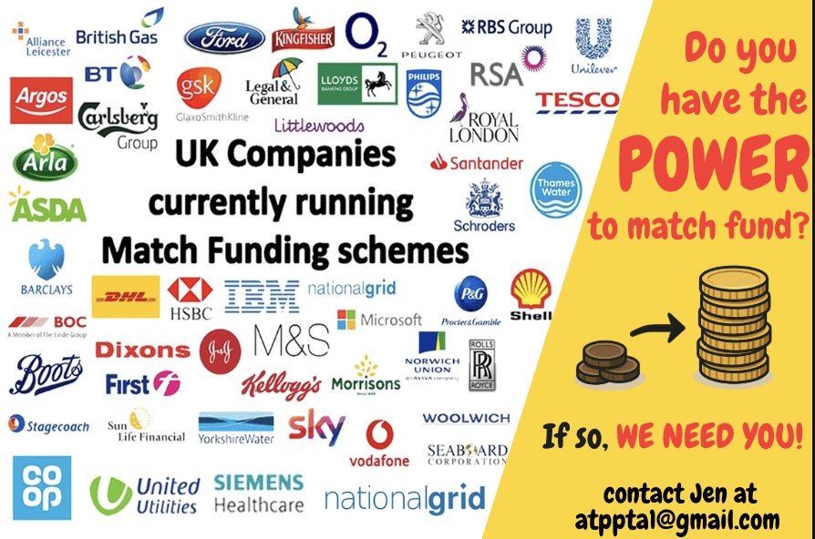Match giving, or match funding, is a simple way to maximise our fundraising efforts of individual PTA volunteers.